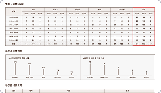 부정적인 데이터가 급증할 경우 알림을 통해 빠르게